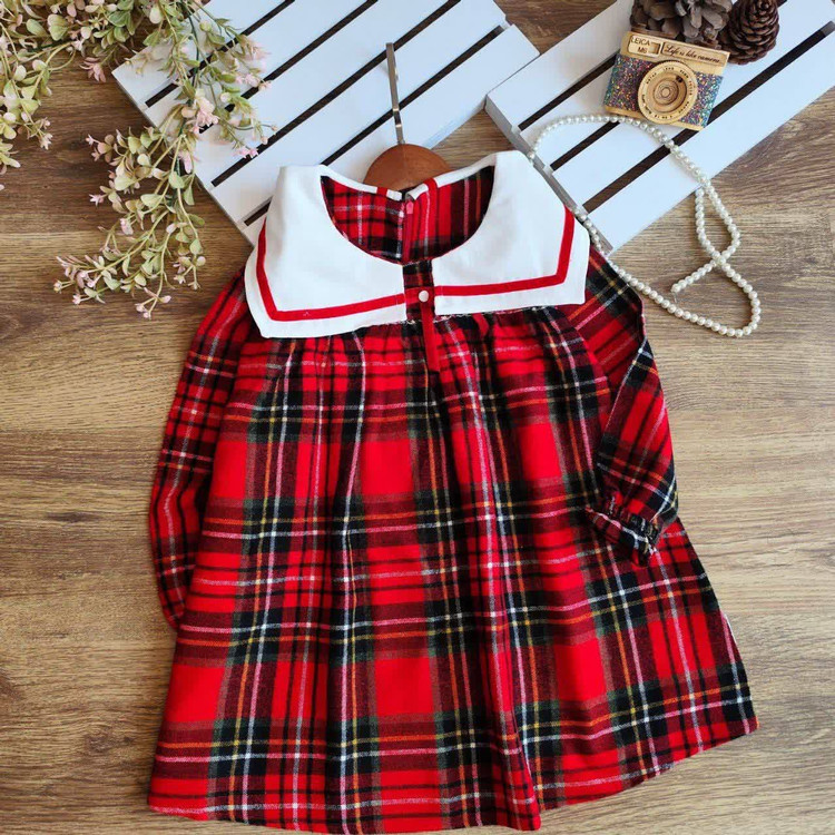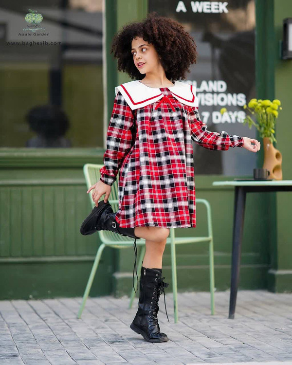 ✔️ پیراهن چهارخونه قرمز با یقه سفید و جزئیات قرمز، یه انتخاب خاص برای دخترهایی که عاشق تیپهای شاد و متفاوتن. .