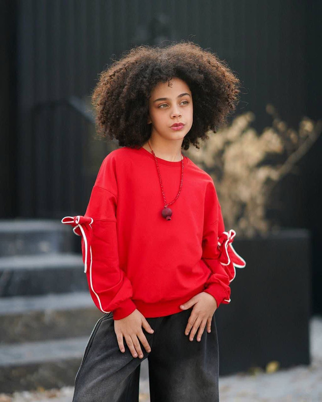 ✅ رنگ قرمز پرانرژی با گردنبند طرح انار و آستینهای پاپیونی، مخصوص دخترهایی که عاشق استایل یلدایی و متفاوتن.