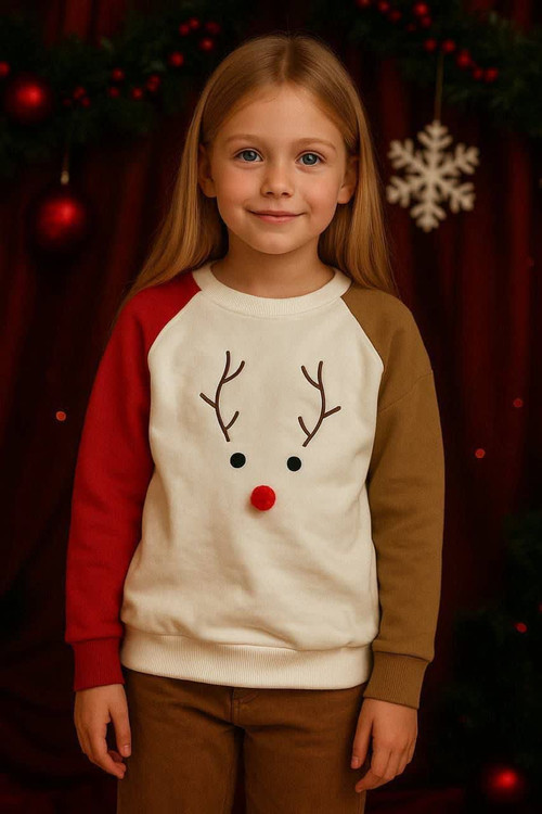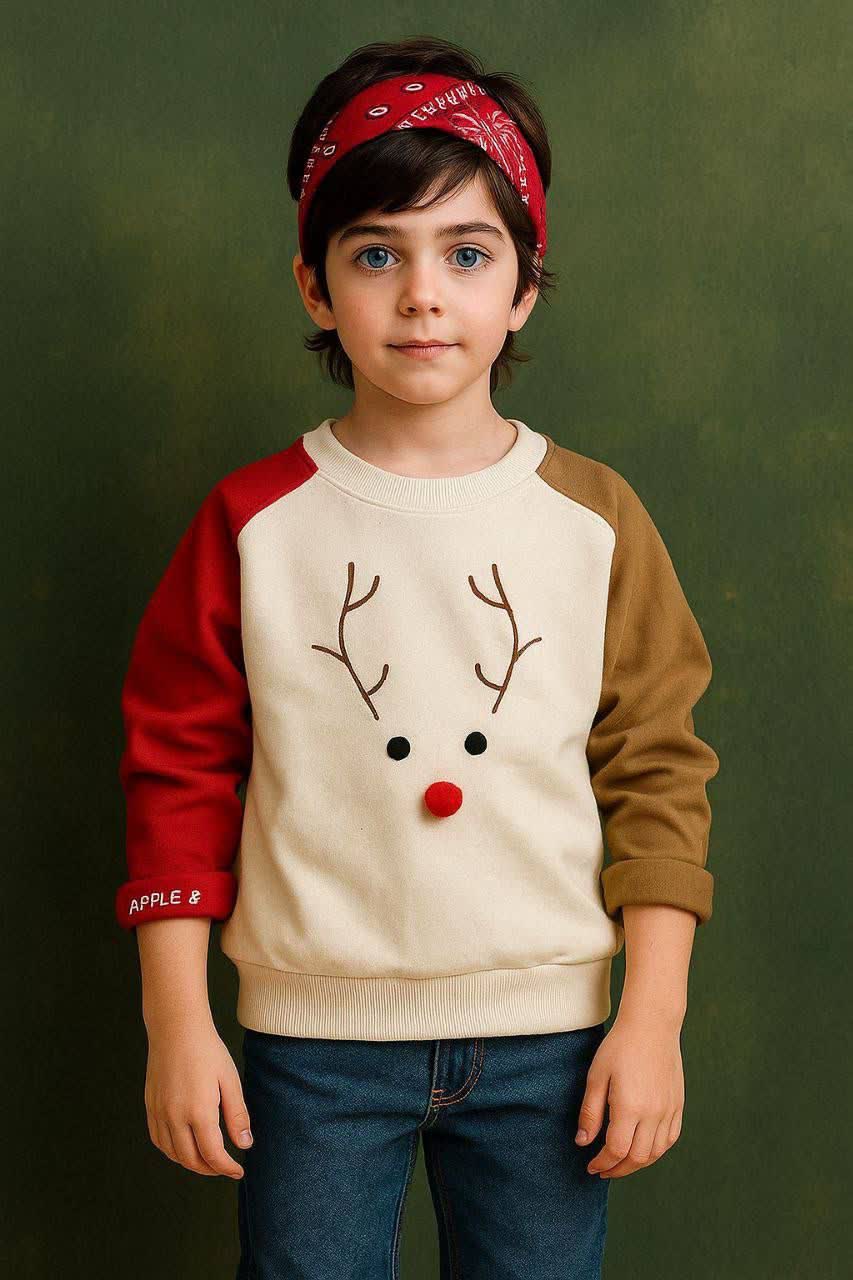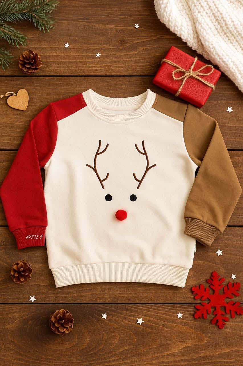 ✔️ طراحی فانتزی با صورت گوزن، پاپیون قرمز برجسته و آنتنهای بامزه، مخصوص روزهای سرد و دلنشین.