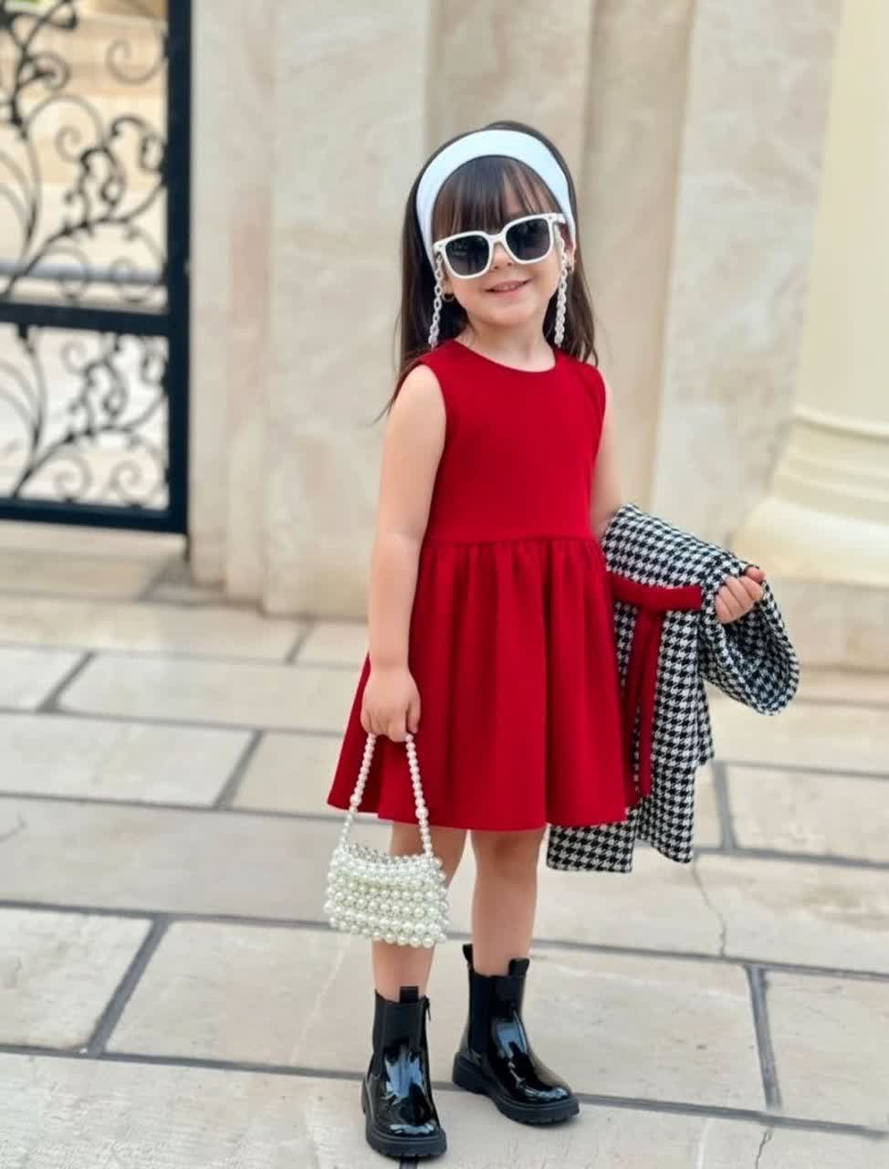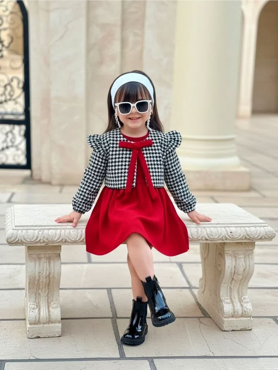 ست کت و سارافون "شیکپوش کوچولو" – ترکیب لوکس توییت و مخمل!