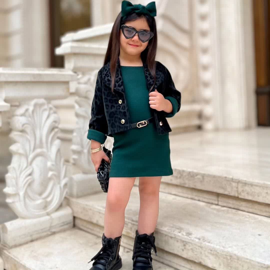 ✅ کت طرحدار پلنگی با دکمههای طلایی، همراه با سارافون بافت گرم و خوشفرم، یه ترکیب خاص برای دخترهایی که عاشق استایل متفاوت و مجلسیان.