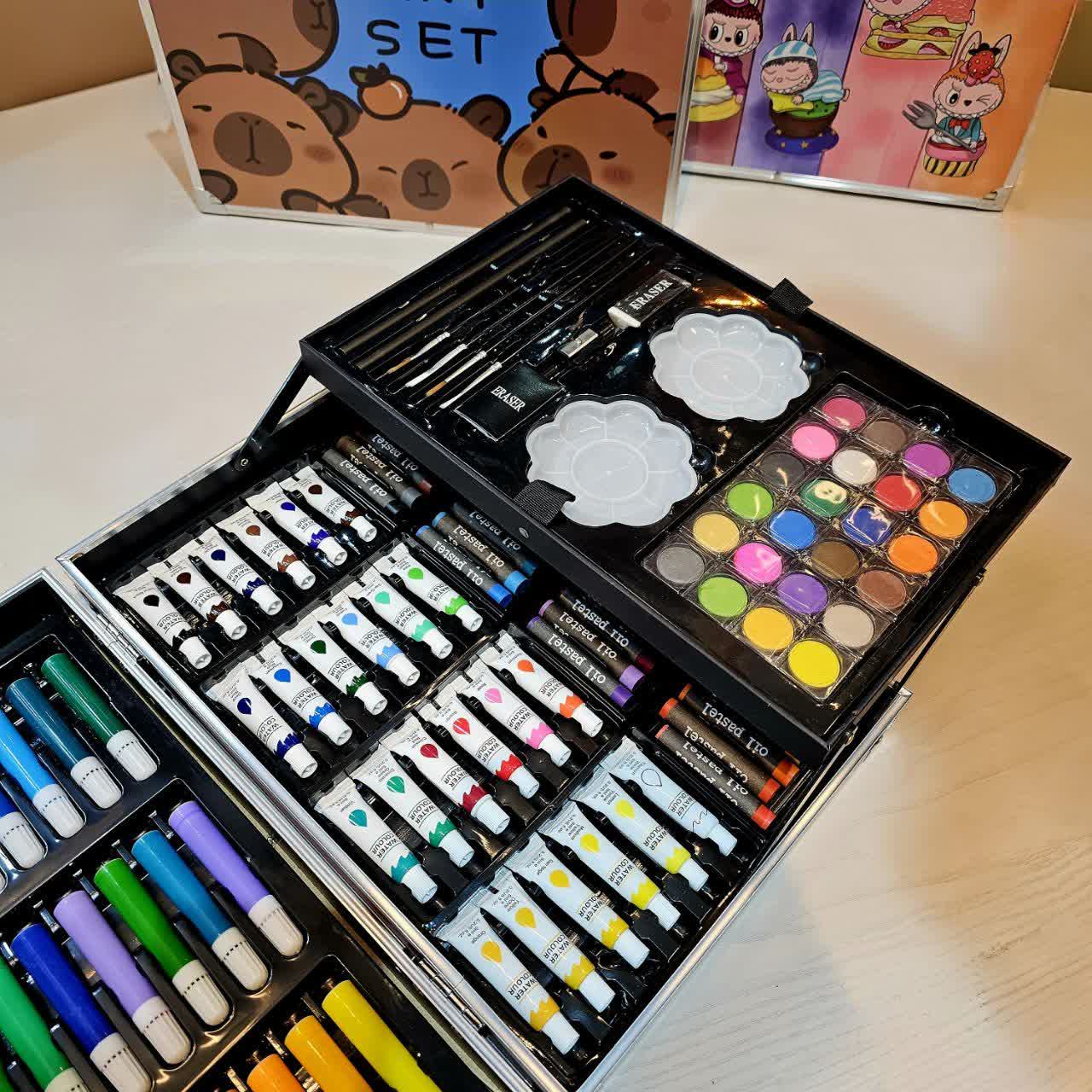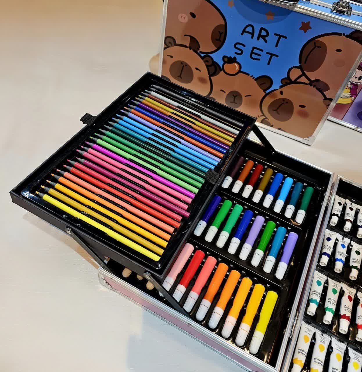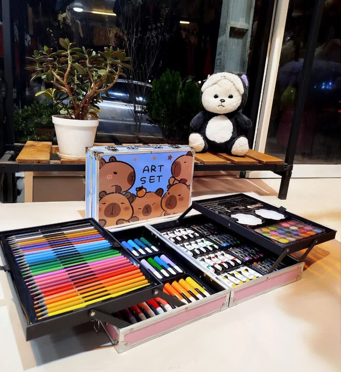 ✔️ محصول دارای 145 قطعه شامل مداد رنگی، پاستل، آبرنگ، ماژیک، رنگ روغن و مداد ، تراش، پاکن، قلم مو میباشد
