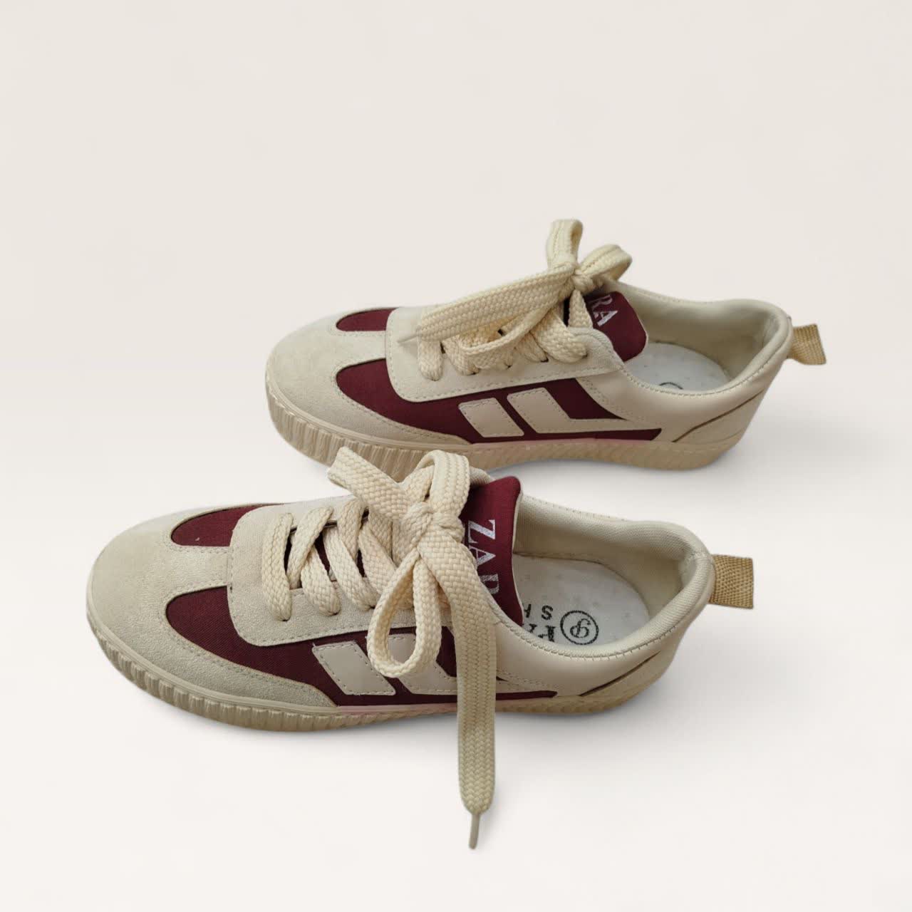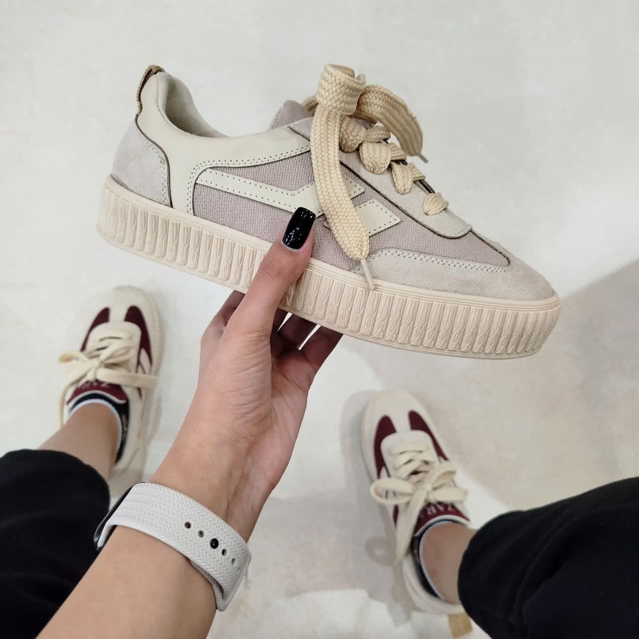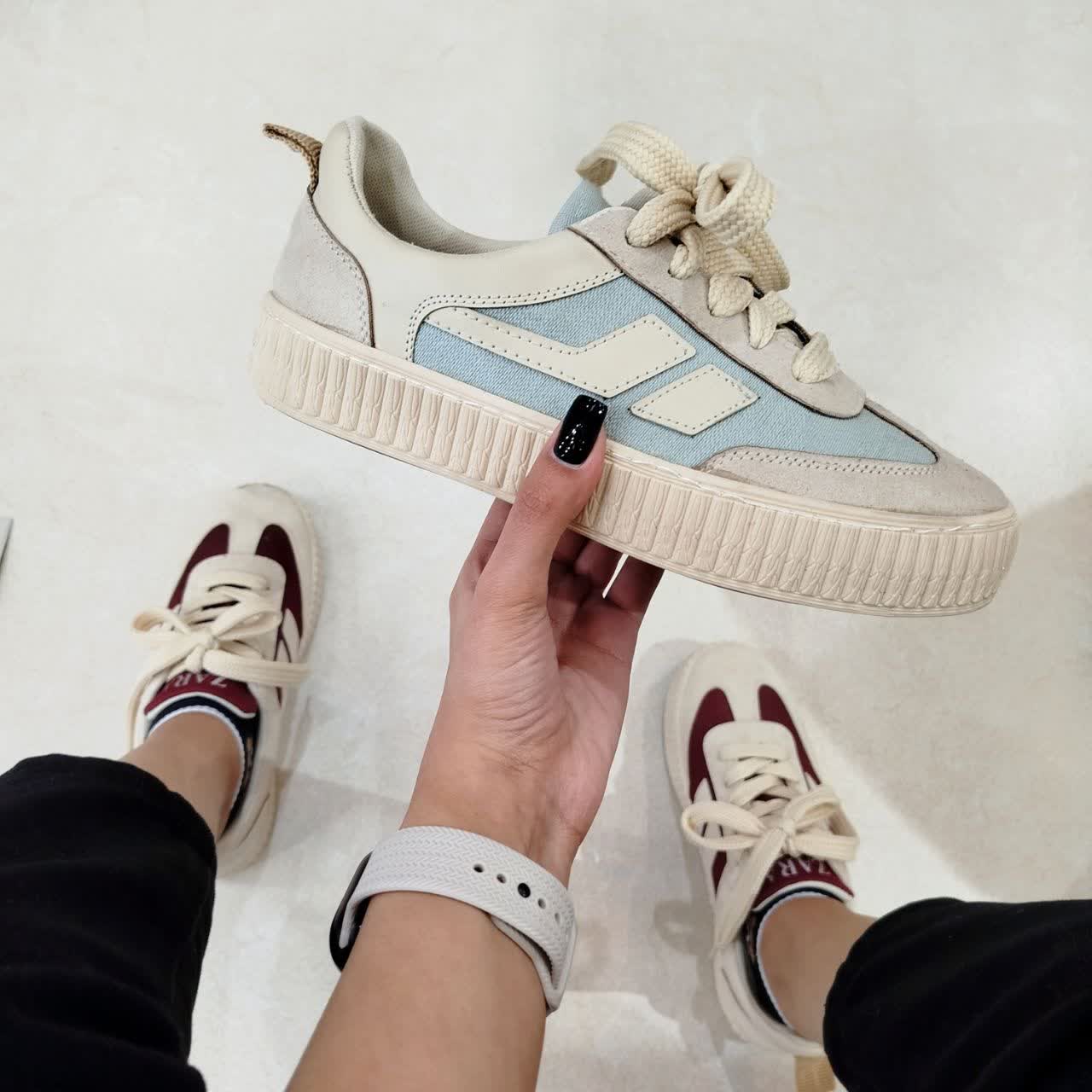 کتونی PALIA ✔️ سایز بندی : ۴۰ ✔️ رنگ بندی : کرم_زرشکی ، کرم_آبی ، کرم ✔️ زیره نرم و منعطف ✔️ جنس رویه : شانل 📏راهنما انتخاب سایز : سایز ۴۰ اندازه کفی داخلی ۲۵ سانت