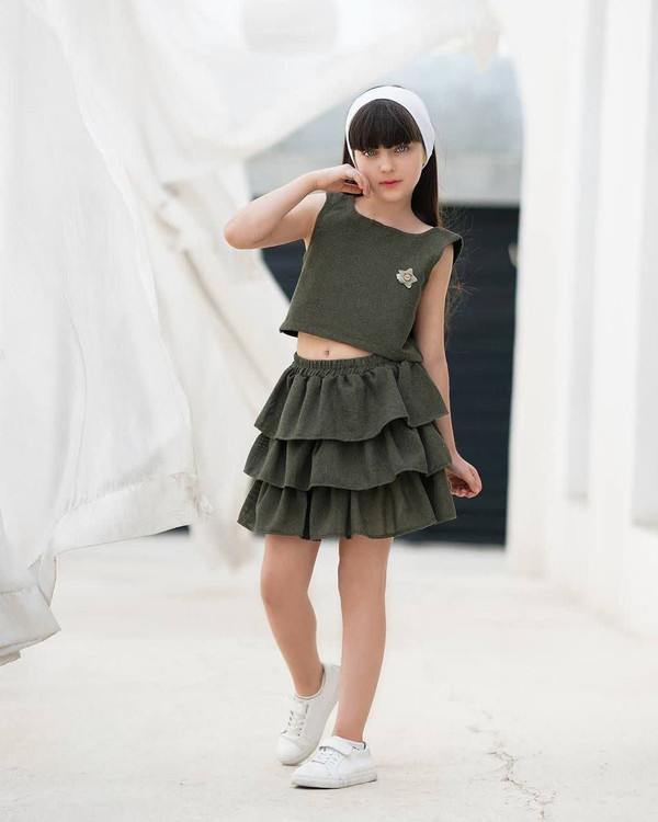 سایز ۵۷ | قد کراپ: ۳۴ | دورسینه: ۸۰ | قد دامن: ۳۷
