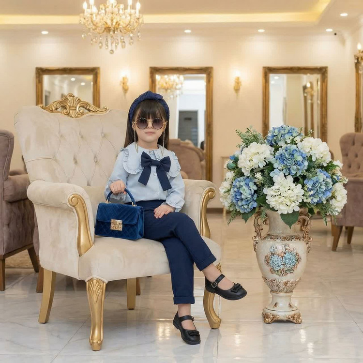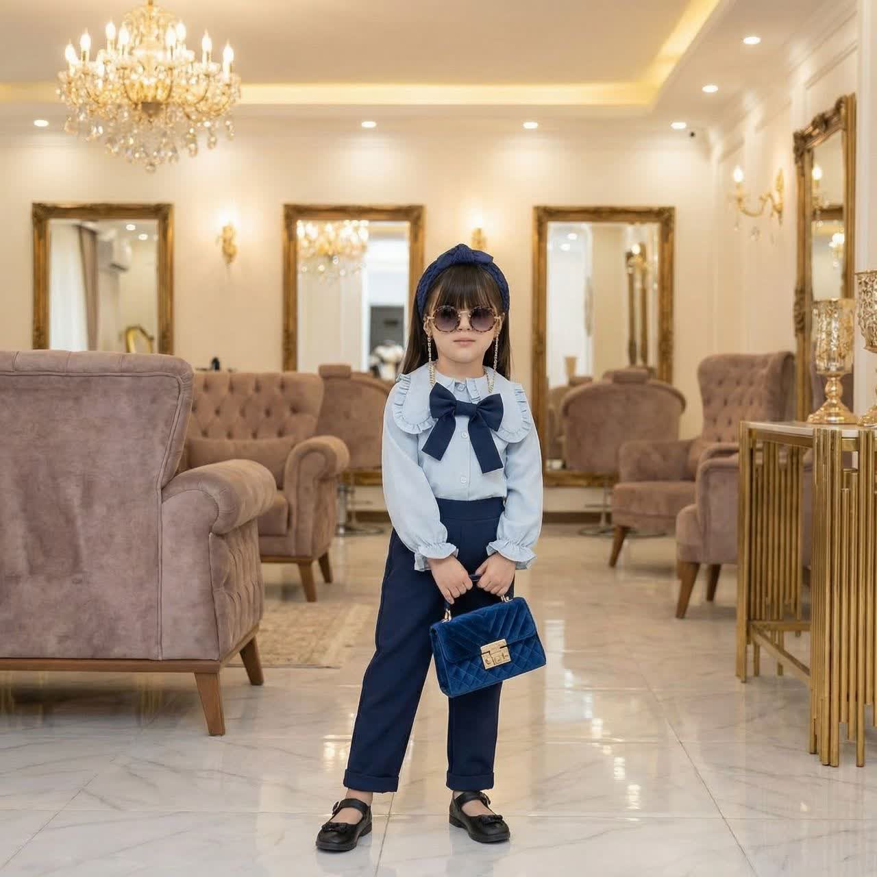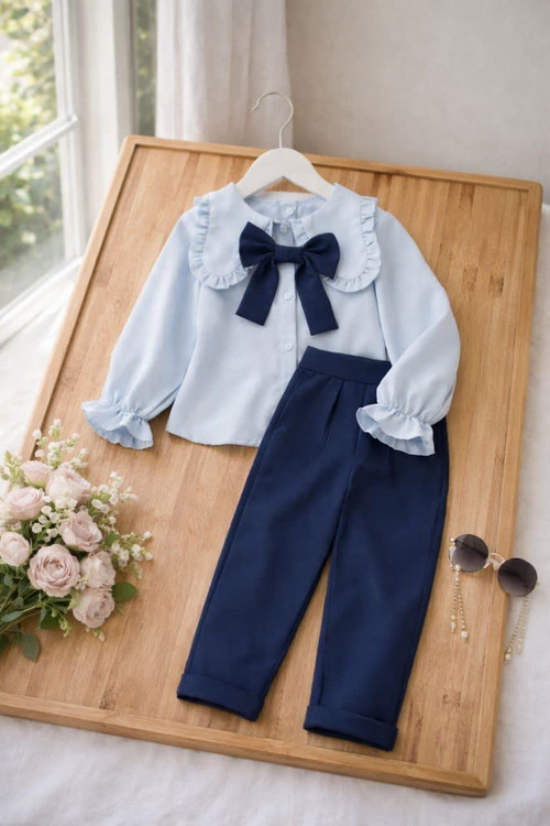 ست شومیز شلوار مجلسی دخترانه مدل پاپیون 🎀