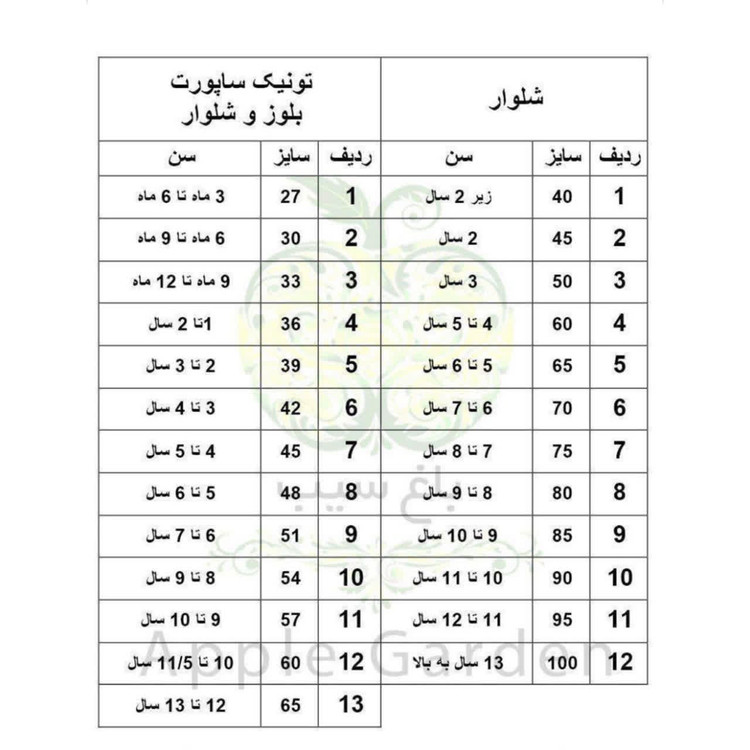 راهنمای سایز در عکس آخر