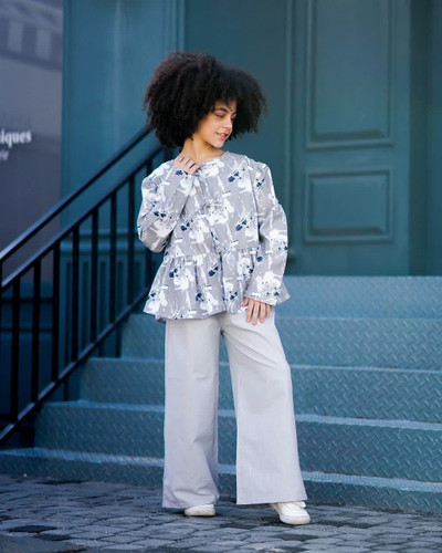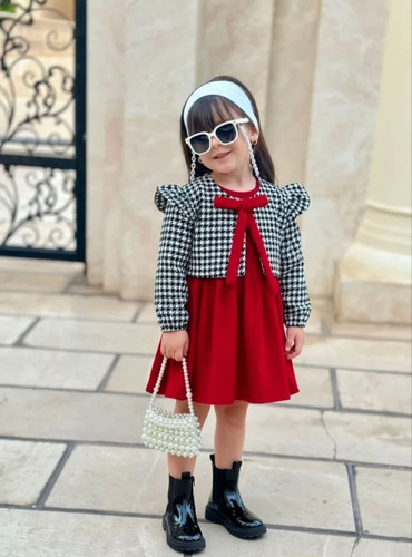 لباس کودک را پهن کنید قد آستین از یقه تا مچ دست و قد لباس از کنار یقه تا پایین اندازه بزنید.